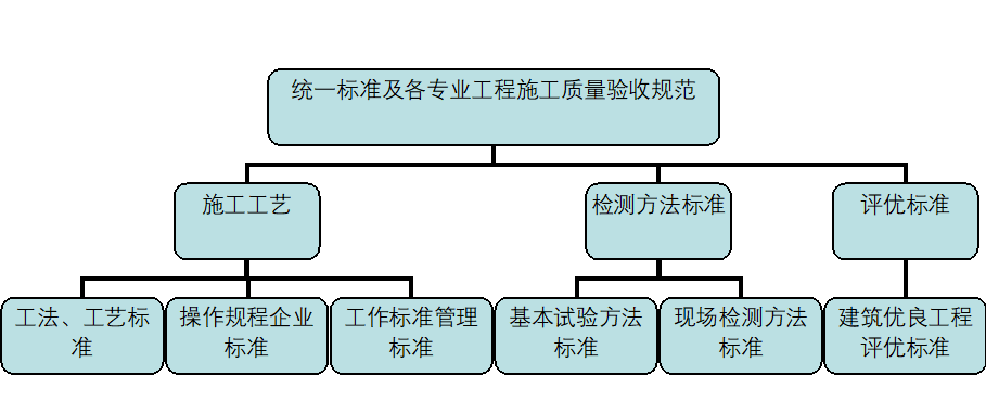 另外,本标准规范体系的落实和执行,还需要有关标准的支持,其支持体系见图1.0.3工程质量验收规范支持体系示意图。